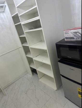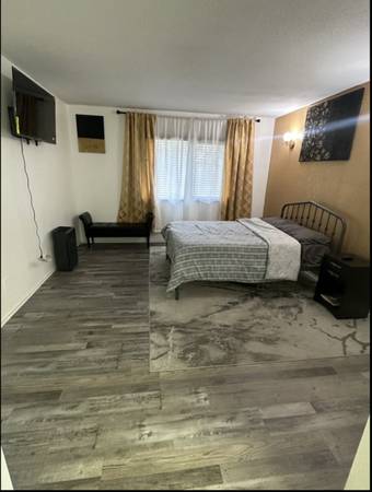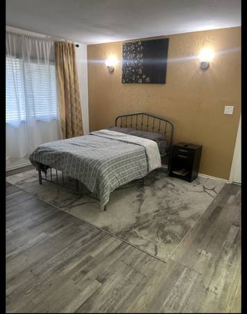 Private ensuite room with walk in closet in a house, fully furnished with tv , fridge freezer and microwave. Only share space is the kitchen ( cooker and cabinet). No pets allowed, single person only. Bills included with internet. No laundry provided, no shared living room. Short term rental / month to month lease.