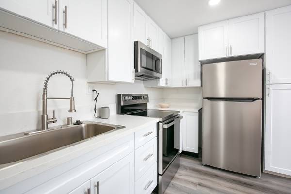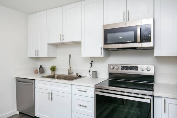 β’ Fully equipped kitchen with stove, microwave, dishwasher, and refrigerator