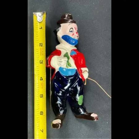 • • Vintage Rare Collector’s Kreiss & Co. Hobo Clown with circus Pig on a Twine Rope • •
