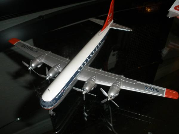 Various 1:200 diecast airliners from fifties propliners to the equipment I crewed on with several air carriers from '69 on. So Lockheed 1649A Starliner, Boeing 377, Lockheed L-188 Electra, Convair 440 Metropolitan. Douglass DC-7C, Flying Tigers (FTL) DC-8-63, Boeing 727-100, Boeing 747-200, & National Airlines Boeing 757-200 (with RB-211s). $150 each.