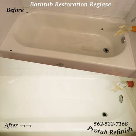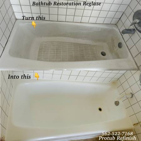 Are you living with a chipped, scratched, stained or ugly bathtub AT ProTub, CA? You may be surprised what you can do with it. With bathtub reglazing from ProTub Refinish, you can have a like-new tub and breathe new life into an outdated bathroom without investing in an expensive remodel. That means no messy demolition, no sky-high contractor bills, and fast, great-looking results.Contact us (562) 522-7168 OUR services INCLUDE:*BATHTUB AND CERAMIC TILE REFINISHING*FIBERGLASS TUBS AND SURROUND REFINISHING*COUNTERTOP REFINISHING* CERAMIC TILE Reglazing*FIBERGLASS TUB AND SHOWER REPAIR*CHIPS AND CRACKS REPAIRED*COLORS CHANGED*Metal Bathtub Refinishing