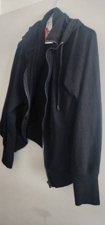 Slightly used DANSKIN (Unisex) Small Hooded Black Jacket - (Boy or Girl). Slipper in front and Tie Lace in Hood. Great for those cool nights of Spring or Summer.