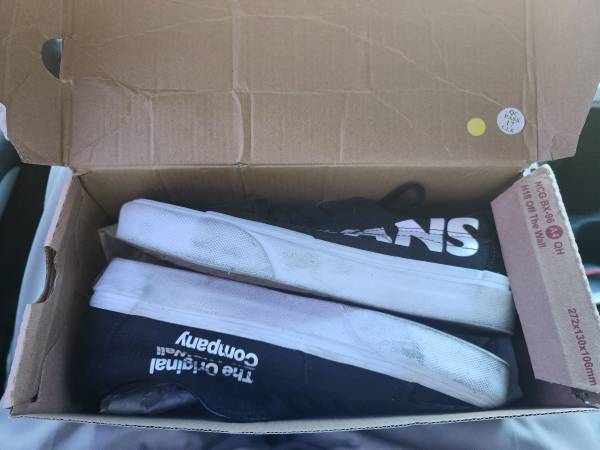 Kids Size 4 VANS Off The Wall Sneakers. NEW with original box. Black with a White Trim on bottom. Asking $30 OBO
