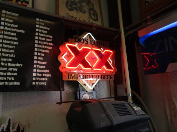 Neon Dos Equis Imported Beer advertising sign. Working lights. See pics, Hanging bracket 24" tall x 21" wide.