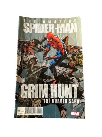 "Spider-Man: Grim Hunt-The Kraven Saga" is a 2010 comic book from Marvel Comics, featuring a story written by Joe Kelly and illustrated by artists Matt Hollingsworth, Stefano Gaudiano, and Michael Lark. The comic centers around the character of Kraven the Hunter, as well as Spider-Man, and other notable characters such as Chameleon, Scarlet Spider, and Dr. Octopus. With a modern age setting and a superhero genre, this comic book is a must-have for fans of US Comics and the Spider-Man series. The cover art by Stefano Gaudiano and Michael Lark adds to the appeal of this collectible item for comic book enthusiasts.