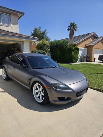 Selling my 2004 mazda rx8. Original color is silver it has a grey wrap on it. Starts up easy, no hot-start issues. Runs, idles good no issues. Just paid registration, passes smog no issues.