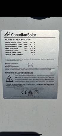 240 Watt used Canadian Solar Panels - general for sale - by owner -...