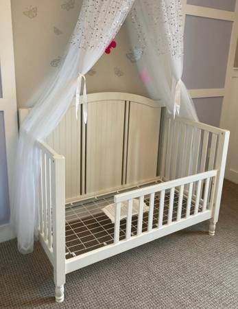 Pottery Barn kids wooden crib that converts to a toddler bed and double bed.