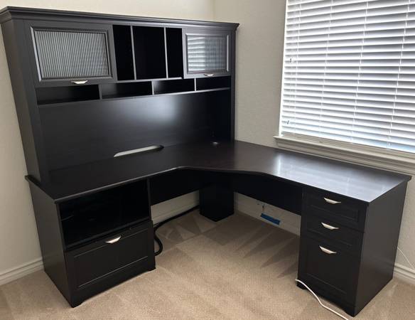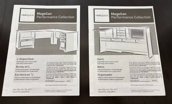 Nice, clean condition Office Corner Desk & Hutch made by Realspace. Magellan Performance collection. Purchased new in 2017 from Office Depot. Espresso color. Hutch is 71” wide, 40 1/2” tall, 12 7/8 deep. Corner Desk is 71” wide, 30” tall, 23 1/4 deep. Lancaster at 60th and K.