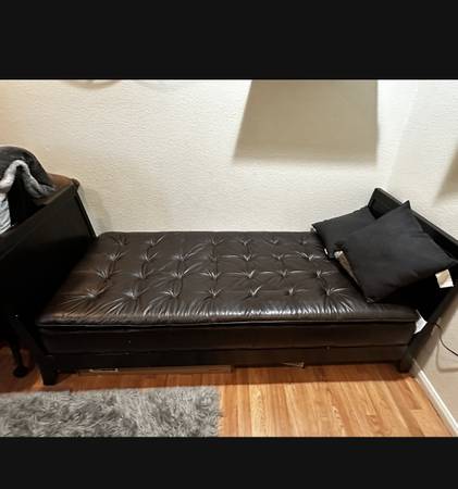 Wood and Leather twin size daybed Used but in good condition Comes with 2 xxl microfiber pillows to place on each end Price is Negotiable