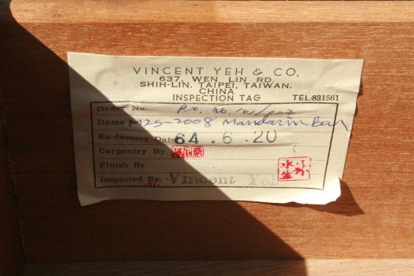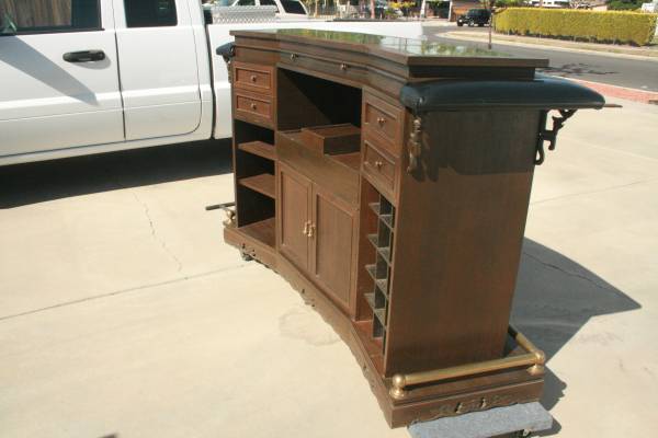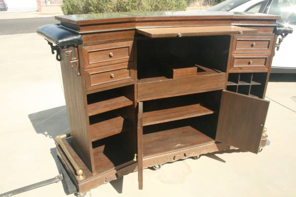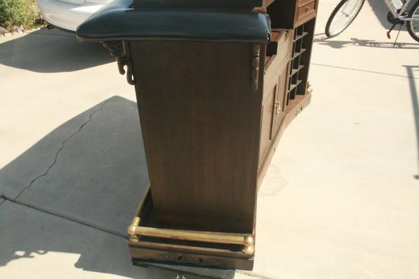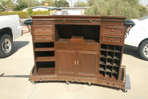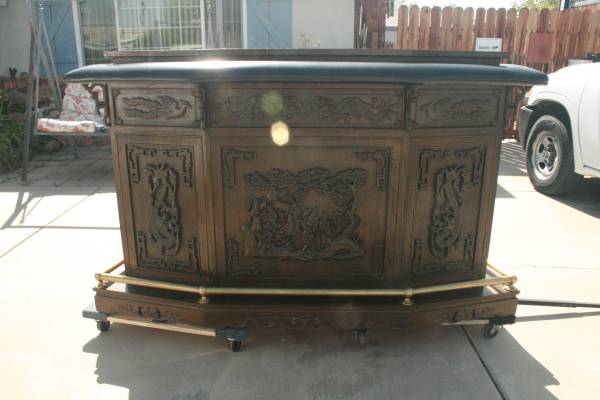 It was made in 1964, has a Chinese look with all the carvings, very well constructed, heavy, has many storage areas, and room for many bottles of Wine.