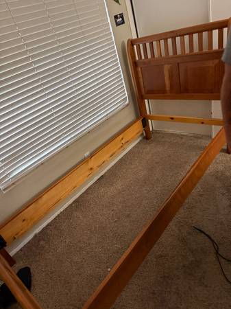 Twin XL bed frame (no mattress) Has all pieces, slat inserts, and screws. Disassembled. In good condition.