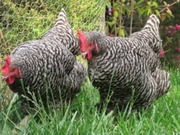 Strong and healthy Barred Rock hens and roosters available for $75 each