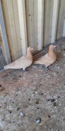 These are Yellow Racing Pigeons — eye-catching and unique. Strong flyers and great for adding rare color to your loft or bloodline. Come pick the ones you like.