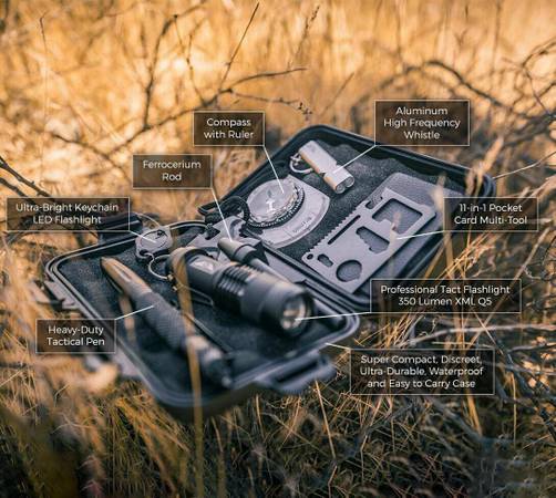 The Professional 8-in-1 Survival / Everyday Carry Kit was specifically designed and developed by our experts to keep you safe in any situation.