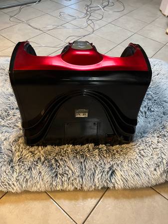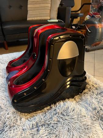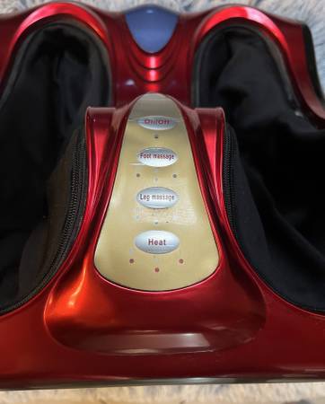 Hardly used, sanitized and in excellent condition. Was used by my uncle 4 times and then he moved cross country and didn’t want to bring it. The black cloth material that the calf and foot slides in are removable and are newly washed. The whole unit was cleaned with alcohol and sprayed with Lysol disinfectant. Whether you are stressed out at work, or relaxing in front of the TV at home, release that last bit of stress and feel truly at ease with this foot massager.