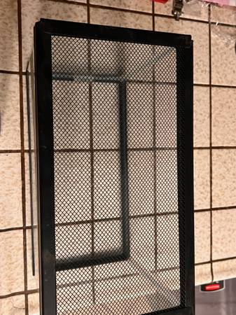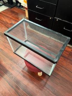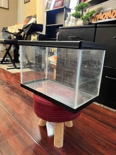 5.5 gallon standard glass aquarium with black trim. Can be used for fish, turtles, frogs, lizards, etc. No leaks. Made of silicone and glass. 16 (L) x 8 (D) x 10.5 (H). Comes with a screen top/lid and a basking platform/dock if you want to use it for different applications. Contact Armond if interested.