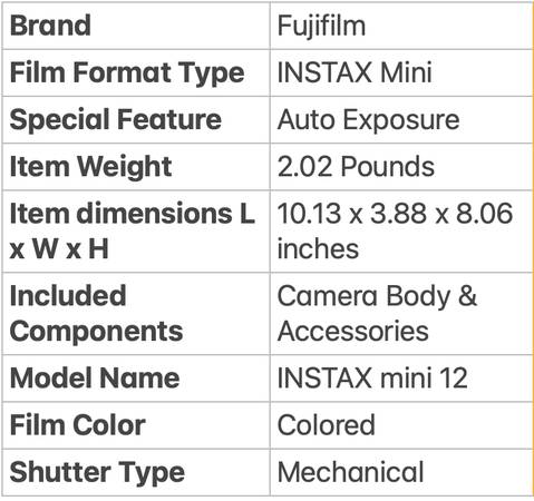 * Capture Memories Instantly: The Fujifilm INSTAX Mini 12 Instant Film Holiday Camera Bundle is designed for those who love to capture and share moments on the go. With the INSTAX Mini 12 camera, you can snap vibrant photos and print them instantly, making it perfect for spontaneous adventures or holiday gatherings. The included 10 pack of instant film ensures you’re always ready to document your favorite memories, whether at a party, on vacation, or just having fun with friends.