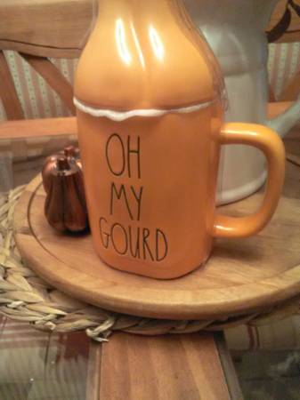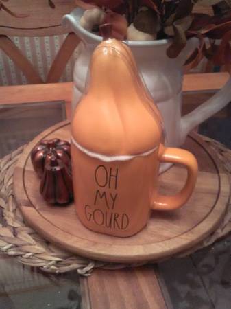 Brand New RAE DUNN Oh My Gourd Mug with Topper. Don't skip this "GOURDGEOUS" mug! Color: Orange Approx measurements 4.5in D x 9in H. Dishwasher and microwave safe New, never used. In original...