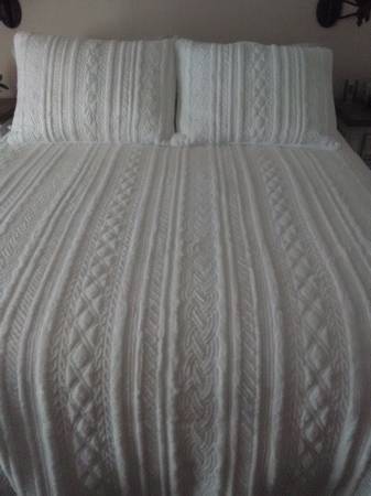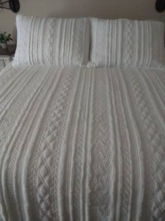 NICOLE MILLER Home Bedding Cable Knit stitch with micromink reverse Quilt Very soft and comfy Queen size Color: White Set includes quilt and standard shams Just used once and switched by a floral...