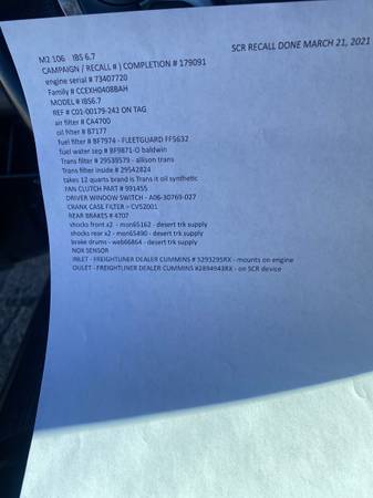 Cummins Eng. automatic. Clean and Curent Calif title. All service done since new! Excelent condition fully equipped! See specs in add. Call for more information. 245725 miles