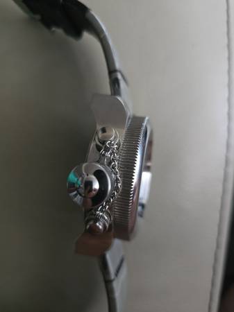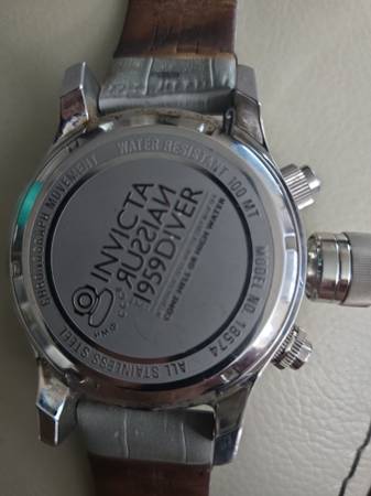 RUSSIAN DIVER 1959 LEFT HANDED MENS WATCH. COME HELL OR HIGH WATER. QUARTZ CHRONOGRAPH MOVEMENT. LEATHER BAND. 54MM WATER RESISTANT 100M.