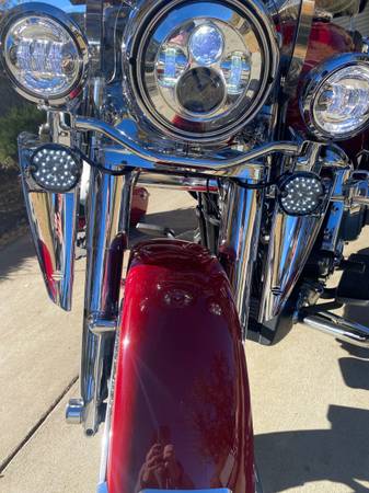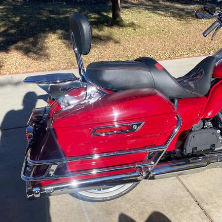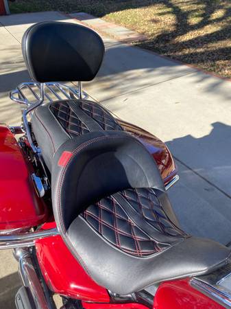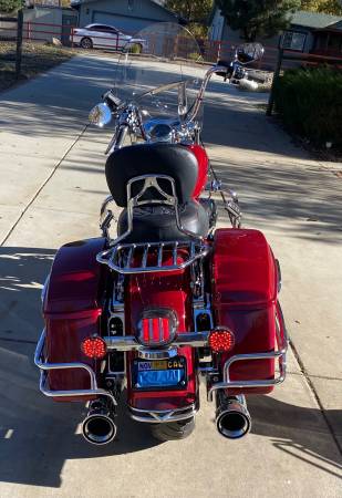 This beautiful Billiard Red Road King touring bike comes with a ton of extras: