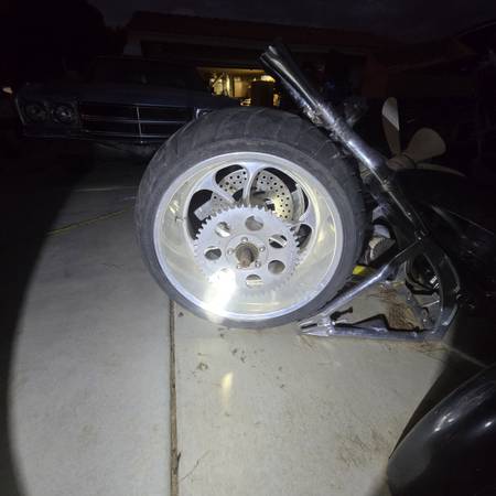 Up for grabs is a Harley Davidson big back tire with a solid 85% tread life left β plenty of miles to go! Itβs already mounted on a custom rim and comes with two rotors, making this a killer setup for anyone looking to upgrade their ride.