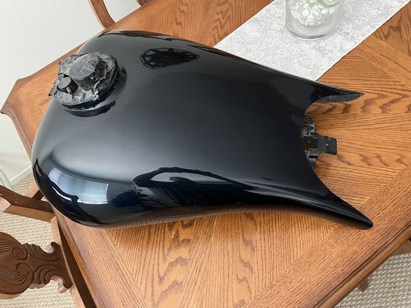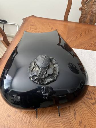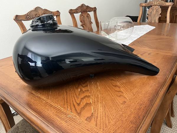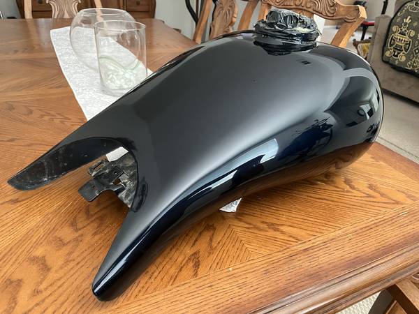 Metal Stretched GAS tank for touring models no hardware, no cap included paint is dark navy blue. It has some minor blemishes that can be polished out ... Firm price!