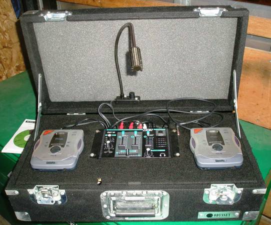 MINI DJ RIG THIS IS A GREAT RIG FOR THE TRAVELING DJ WHO DOESN'T WANT TO LUG AROUND A LARGE SYSTEM GOT A COMPACT CAR? NO SWEAT! THIS BABY WILL FIT ANYWHERE. CUSTOM MADE IN A CARPETED CD CASE, IT HAS...