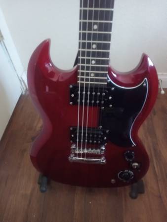 Electric guitar - Epiphone special SG Model with case and stand. The guita is in very nice condition and the stand is an amazon basics brand stand. The case is dusty, but doubles as a wearble guitar backack. (Please include code 8e73b in email or I will not reply). Thank you!