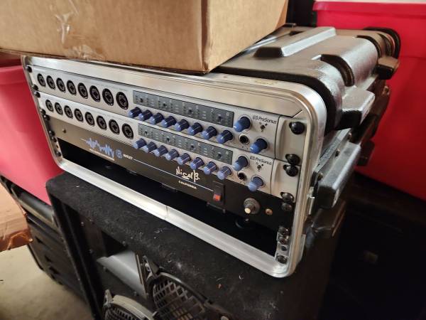16 channel portable recording studio in a 4 space flight case. USB-C to your computer 1TB hard drive