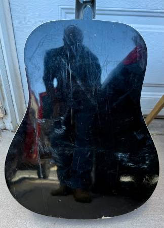 Here is a great guitar use it for Halloween for a prop or restore and use. Missing the pick guard and needs new strings. But no major cracks or breaks in the body. Easy to put back together and play.
