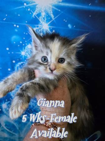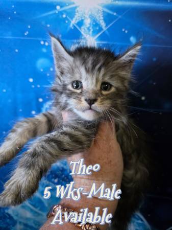 I specialize in larger European Maine Coons. They are CFA regisitered with pedigree, Age required vaccinations and vet health check. Also health guarantee included. Non refundable Down-payment of 5 zero zero , Does go towards full cost of baby. @ 25 zero zero Parents are European imports and genetically health screened all clear.