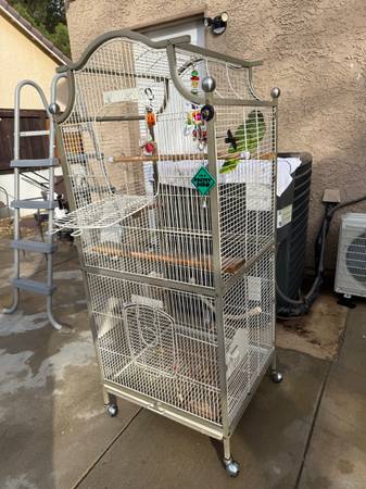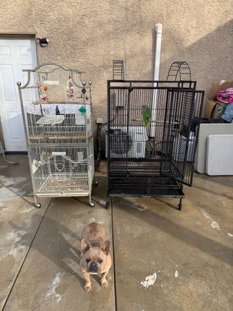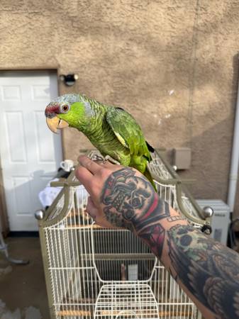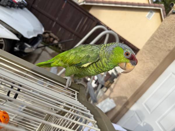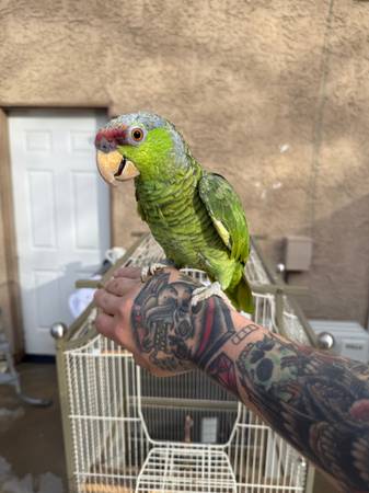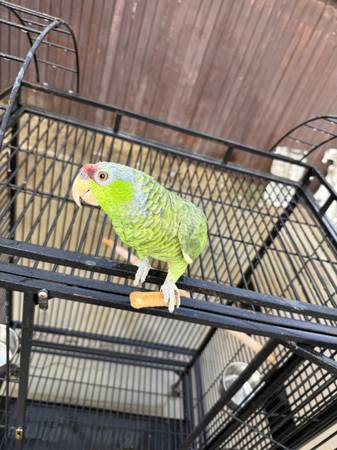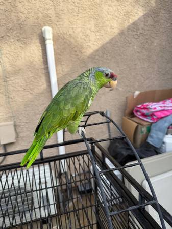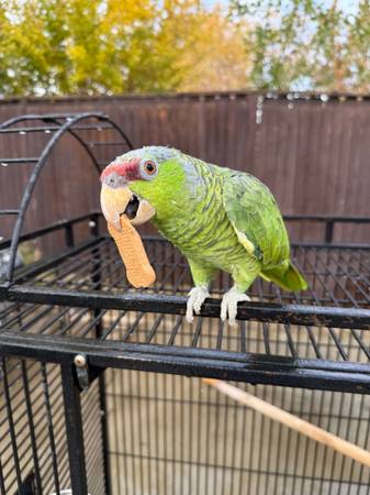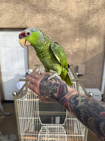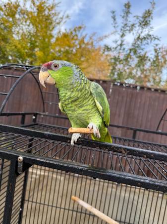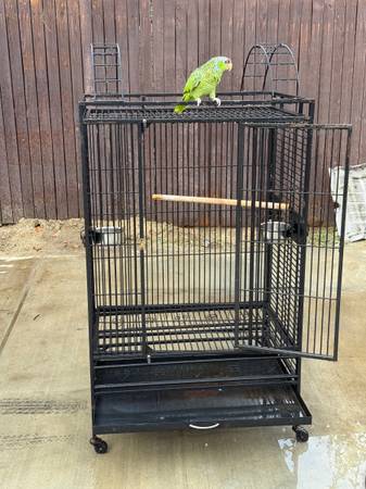 Hey I am rehoming my Amazon parrot . He’s 12 months old. He started talking, says a few words and whistles. He knows how to step up and will come to you for treats. He’s a beautiful bird, fully feathered. He does have his nails/wings clipped and beak filled. We maintain his grooming. I also hand-fed him myself. He comes with 2 cages an indoor cage and an outdoor cage. Both nice cages, on wheels with bowls and perches/ toys etc. He’s on a seed/pellet diet all by with a bird chop I make myself (fruits and veggies chopped and mixed together). If you’re interested text me @ show contact info
