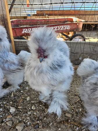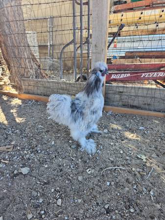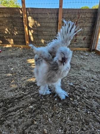 2 silkie roosters for rehoming About 6 months old $50 each Beautiful colors Text me at 661two 36 7zero 94