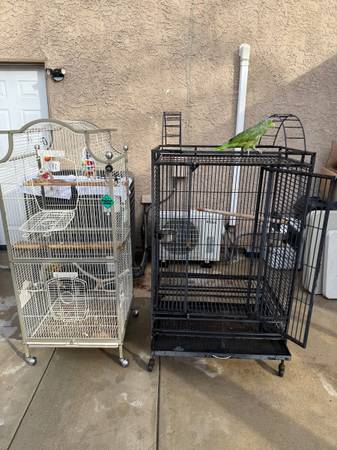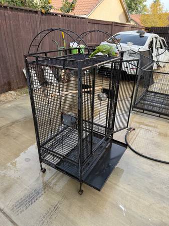 Hey I have a used cage for sale . I used this as an outdoor cage for my lilac Amazon parrot. I no longer need his cage as I’m rehoming my bird. This cage has an area on top you bird/parrot can perch on. It’s also on wheels with locks doors. It comes with a perch and food/ water bowls. If interested text me @ show contact info