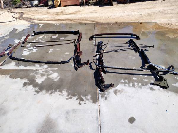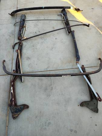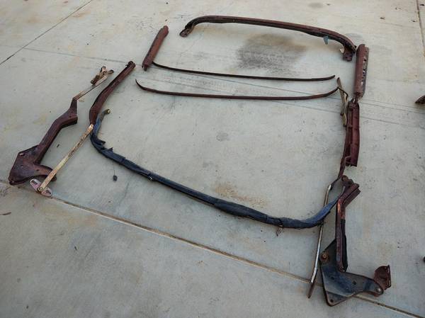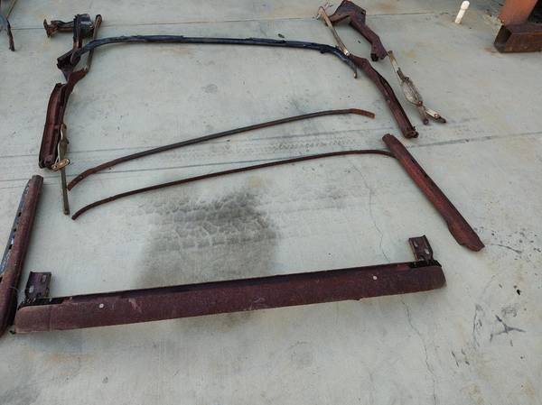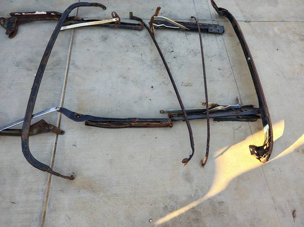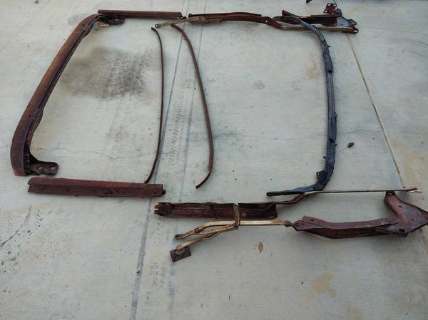 Two sets of mostly complete convertible top irons. The set for $3,000 is less rusty than the set priced at $2,500.