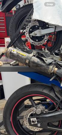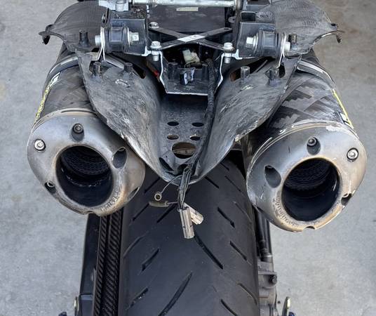 Two brothers slip ons- complete.. for the 2007 2008 Yamaha YZF-R1. I believe they’re titanium and carbon fiber slip ons these have slight rash on one. but the exhaust themselves are in good shape carbon fiber in good shape no damage, rivets are tight. Sounds Incredible. I just purchased a brand new exhaust system so these are for sale they do not look too bad at all And due to that little tiny bit of ROAD rash on the tip. I’ll let these go for cheap $250.00 firm. You can call me at 760876–0 One five
