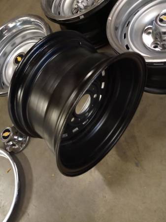 2- 15X7 AND 2 15X8 WHEELS WITH NEW WHEEL PAINT-FACTORY CENTER CAPS-TRIM RINGS 5 ON 5 LUG PATERN. (emails only- with number- (PRICE IS FIRM) $480.00 for all