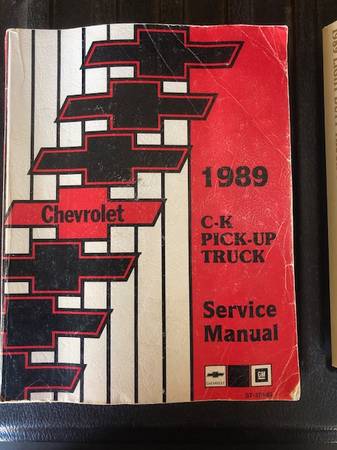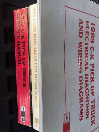 Complete set of factory manuals for 1989 Chevrolet C/K pickup trucks. Includes Service manual, Unit Repair manual and Electrical Diagnosis/Wiring diagrams manual