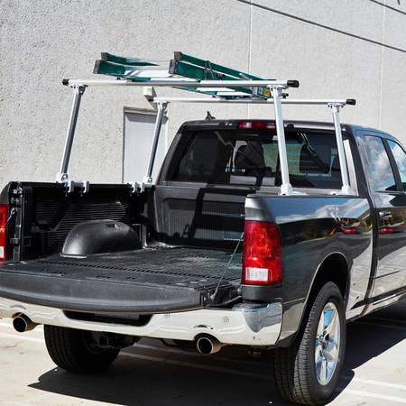 Aluminum Ladder rack is made of rust-resistant durable lightweight aluminum, which can easily hold up to 800 lb. for hauling ladders, pipes, tools, and recreational equipment.