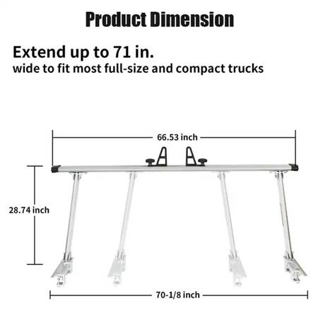 The truck bed rack can extend up to 70 inches to fit most full-size and compact pickup trucks. 4 load stops are adjustable to firmly hold any size cargo and keep the rack ladder more steady.