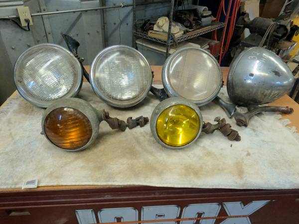 Set 1 - Complete with brackets, need new chrome - $100 Set 2 - Complete with brackets, one cracked lens, needs new chrome $75 Set 3 - Appleton fog lights, different lenses _ $75 No test messages,...