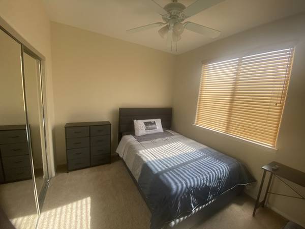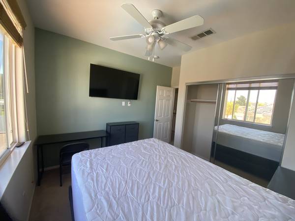 Furnished room with a semi private bathroom available for one occupant located in West Lancaster (Quartz Hill). Price includes all utilities,Wi-Fi, paper towels, dish soap, trash bags and weekly house cleaning to common areas. Guest have access and storage space to the fully stocked shared kitchen, laundry room, and swimming pool. If your looking for a relaxing and quiet place to come home to after work then this is it. Aerospace, Healthcare, Education and other Professionals are welcomed, must be clean and drama free. The room includes a new queen size mattress with bedding, TV, dresser, computer desk, chair, ceiling fan and mirror closet doors. Proof of current employment outside the home will be required. First month rent plus a security deposit are required to move in. No drugs, smoking inside or heavy drinking allowed. Safe, quiet and desirable location. show contact info