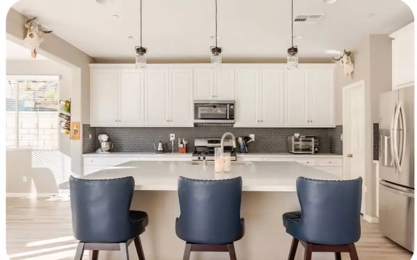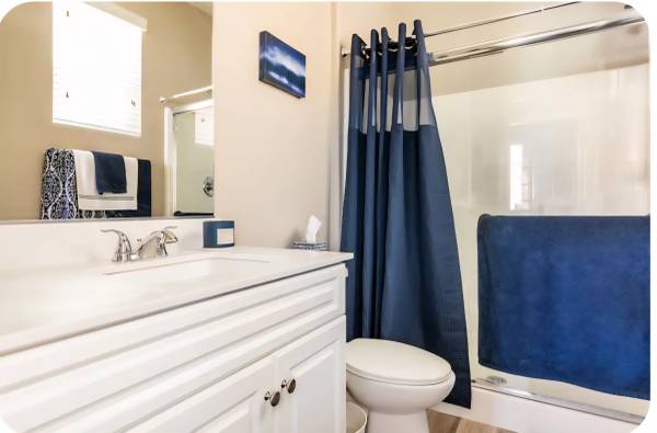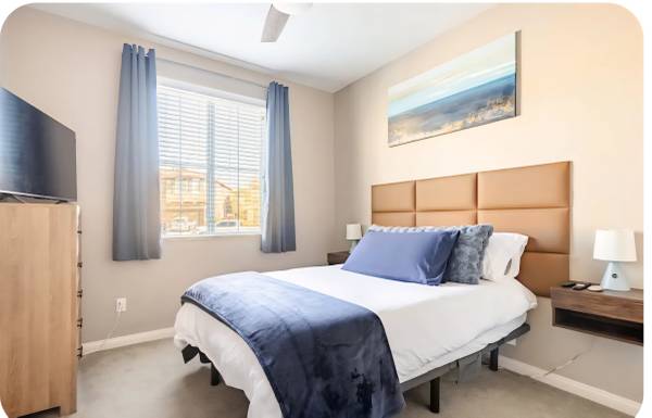 Includes: All utilities, common area access, cookware, utensils, linens, towels, adjustable base bed, blackout curtains, new TCL "43" OLED TV. (EV Charging for small fee)