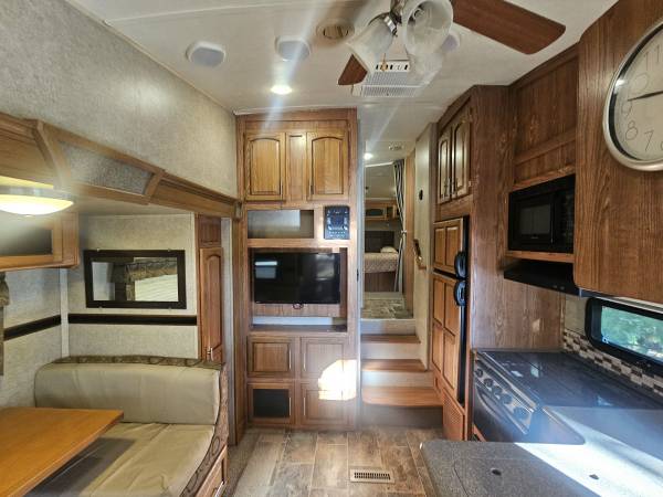 Beautiful fifth wheel travel trailer model number 8244WS. Private bedroom with slideout. Full bathroom. This unit sleeps 4-6. Sofa and dinette convert to beds. Finance available. Call text or email...