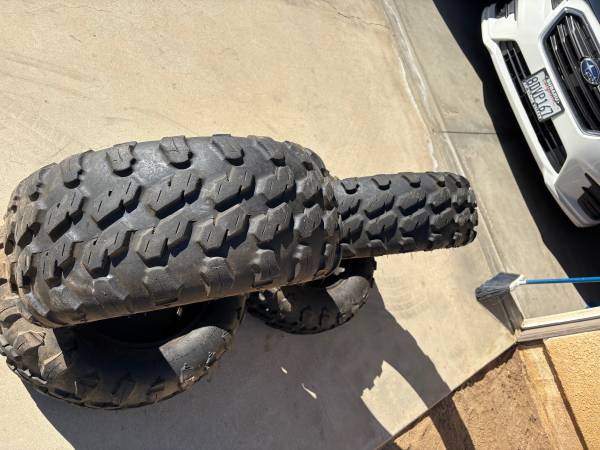 Carlisle Terrathon ATV tires at 26x8-14, 29x10-14. I have two sets of these all held air with no leaks, one front does have a plug it has no leaks. Came off my Polaris sportsmans. $80 for all 8.