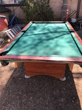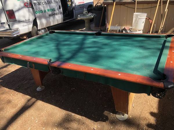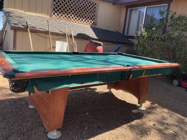 Decent shape, Some Cues sticks ,2 sets balls, Rack. New set of Pockets. Text before you call please. I can call you back too.
