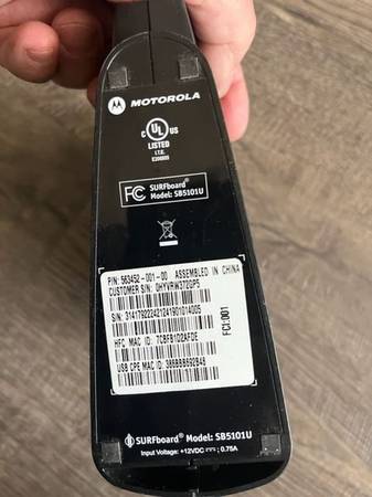 Motorola SB5101u modem with AC adapter - works great! approx 6.5" x 6" x 2" Visit my Ebay store at https://www.ebay.com/str/tvguidesandmore for other items of interest!